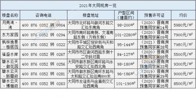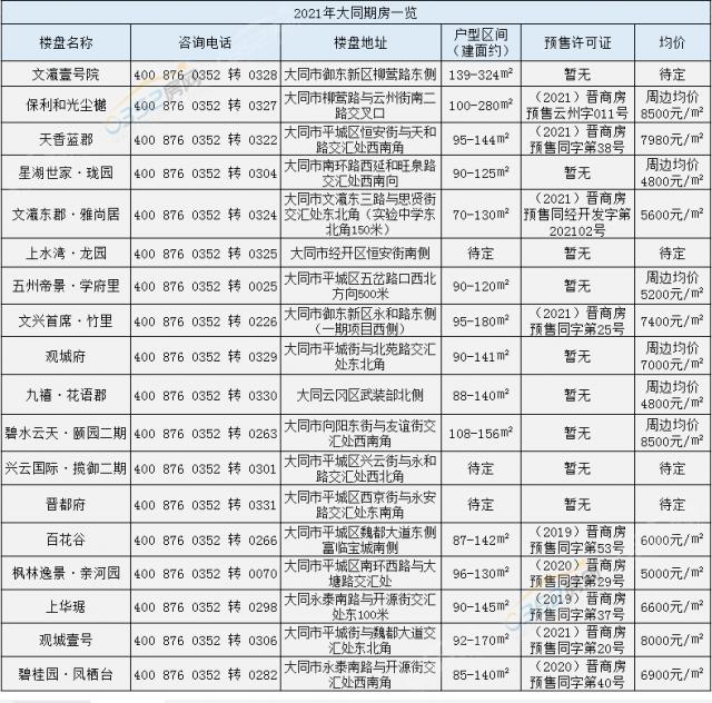 2021年大同期房一覽