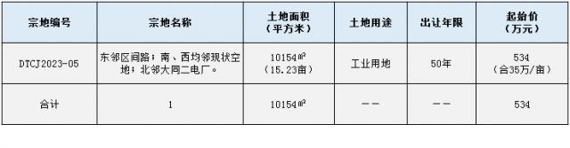 摘要:起拍價534萬元,平城區二電廠南側一宗工業用地掛牌出讓,具體情況如下!