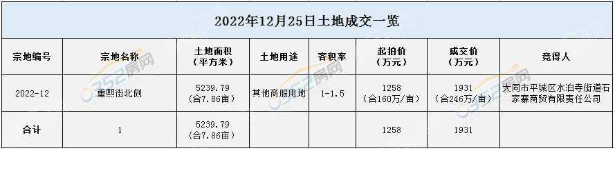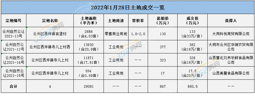 摘要:2022年12月25日,隨著大同云岡區自然資源局四宗地塊的掛牌成交,大同市2022年土地拍賣活動落下帷幕!疫情影響之下,大同土地市場表現如何?