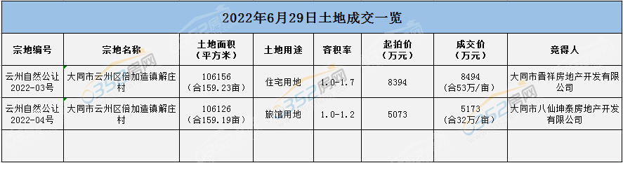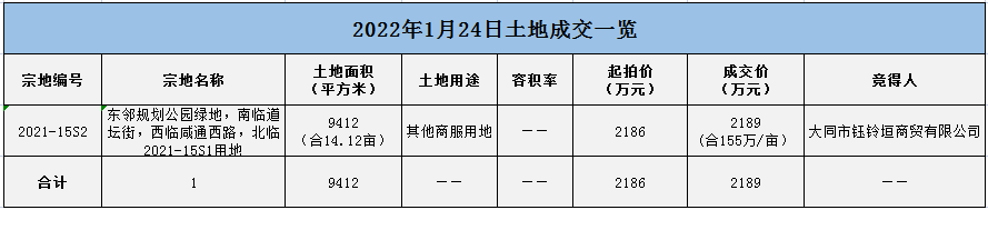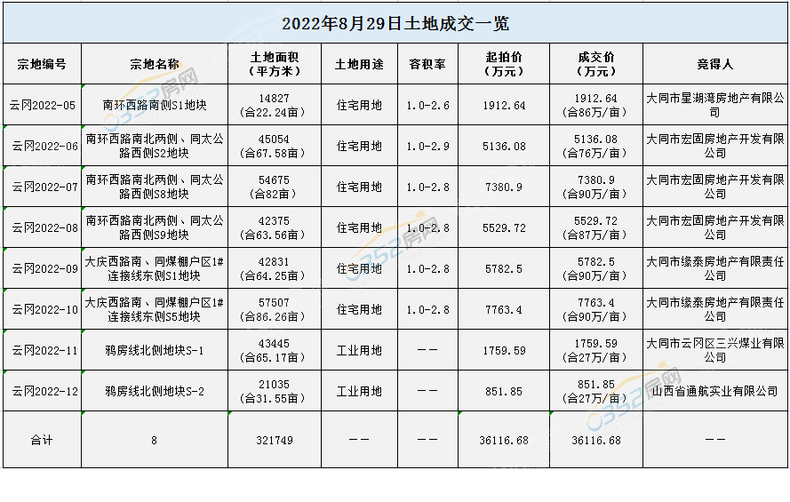 58宗地塊!178萬㎡!2022年大同土地成交一覽