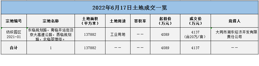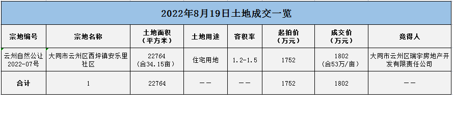 以上就是2022年大同土地成交一覽!可以看出,2022年成交的住宅用地數量較少,并且競得房企以本地房企為主,無外來房企,并且大部分以底價成交,這意味著土地市場不復往日火熱。