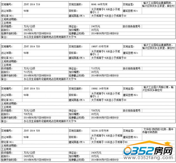 六、本次國有土地使用權掛牌活動 在 晉中市國土資源局國土資源交易大廳(一樓南大廳) 進行。各地塊掛牌時間分別為: