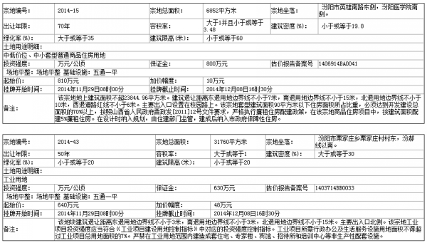 四、本次掛牌出讓的詳細資料和具體要求,見掛牌出讓文件。申請人可于 2014年11月08日 至 2014年11月28日 到 汾陽市國土資源局(政府大院東三樓) 獲取 掛牌 出讓文件。