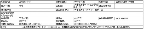 (七)我局于2015年1月29日發(fā)布的晉中國土告字[2015]1號公告中編號為JZGT2015T20號地塊的規(guī)劃容積率更正為1.1-3.0。
