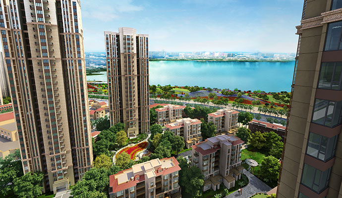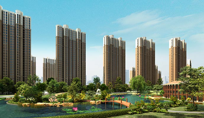 富力城綠化率達35.2%,集中式綠地布局,使組團綠化布局結構及層次分明、綠化概念清晰、方便管理。在景觀布局上以中心景觀為主,順應小區格局采用帶狀綠野方式,并在組團中和住宅間布置綠地,以水為脈絡,創造點、線、面結合的多層次綠化體系,使住戶獲得更多的綠地接觸面。近地面以局部首層架空、水邊棧道、弧形林蔭道、蜿蜒的宅前小道、集中綠地、環境小品等一系列元素,使空間通透,營造出一派綠蔭蔥蔥、流水潺潺的自然美景。