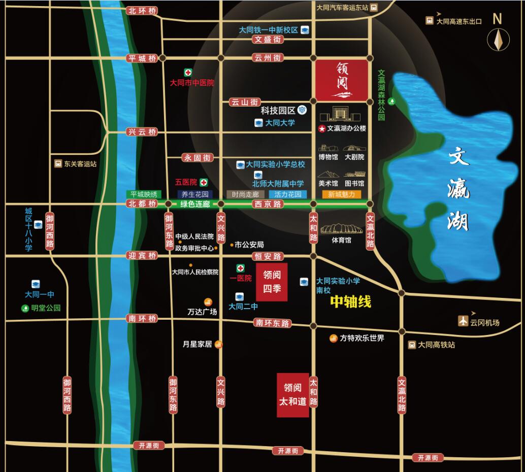凱德世家·領(lǐng)閱北臨云州街,西臨太和路,南臨云山街,東臨文瀛北路,距離古城區(qū)約7km,距離機場約14km,距離火車站5km,距離大同客運東站2km,直達項目的公交線路有38路、64路、65路、70路、602路、604路,隨著項目不斷開發(fā)建設(shè),將來還會有更多的公交線路開通,交通便利,四通八達。